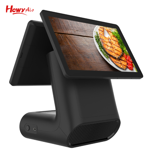 POS All In One PC 15.6 "แท็บเล็ตแอนดรอยด์หน้าจอคู่พร้อมพอร์ต WiFi USB LAN